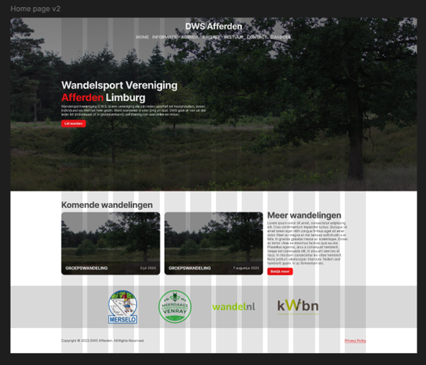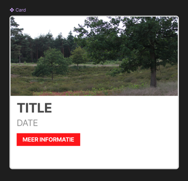 The first version of the sketch to Figma can be viewed below. If the Figma files don't work, see Landing page v1 and Card component v1. The landing page I tried to fully copy from the sketch to Figma. For the picture at the top, I went to the forest near my town and took some pictures with the camera I lent from school. Underneath the hero section is a section with the upcoming hikes. These will be placed next to each other and can be clicked to view a more detailed version. Under this are the "sponsors" and finally we have the footer.