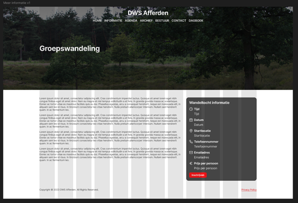 Next I made the more information page for when someone presses on one of the hikes. After showing the layout underneath, I also told her that I'm not a big fan of the colors just yet and that I made a change to the form on the right. What I want now is for the main information to be displayed there but if you want to sign up for the hike you have to do so via e-mail.